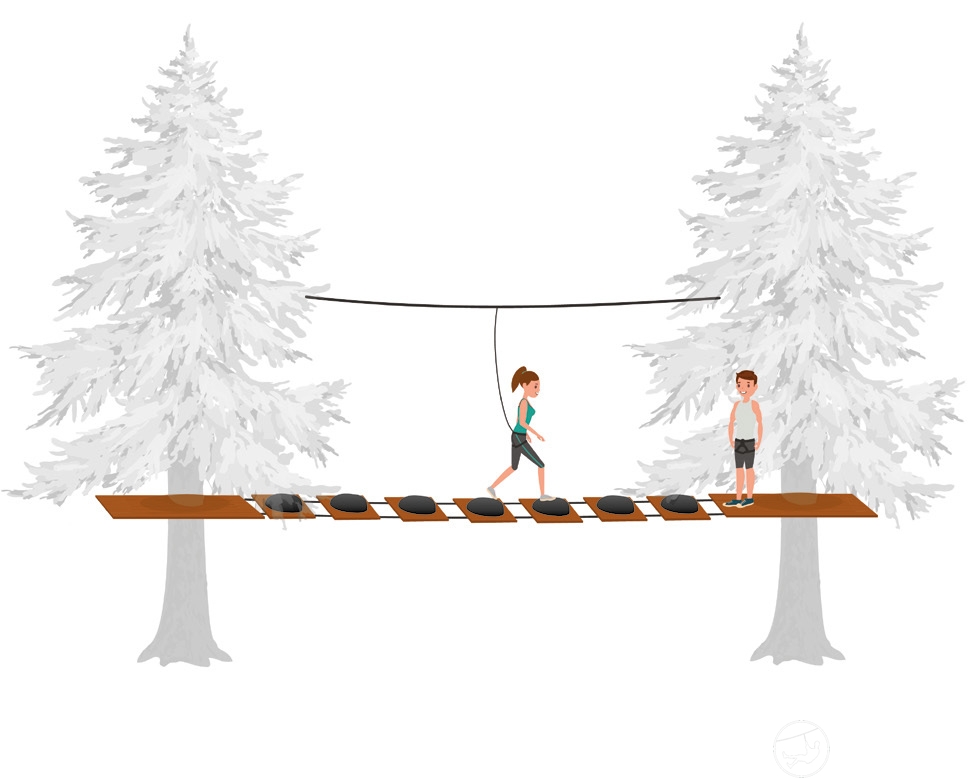 安装在两根钢丝绳上。孔之间的距离为60厘米。