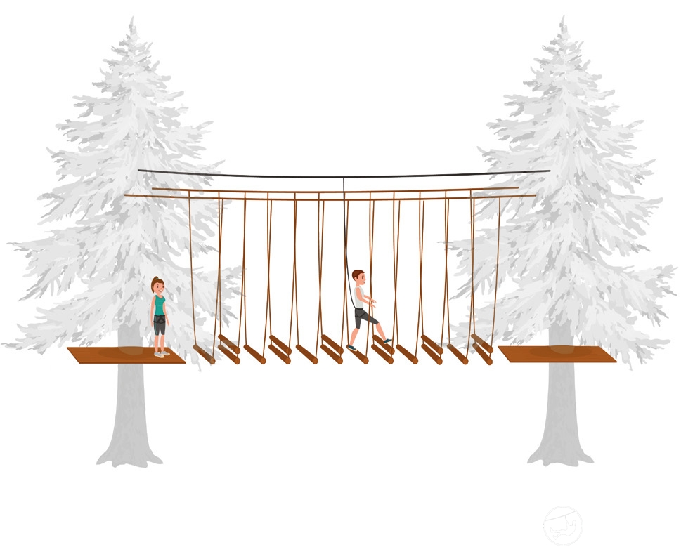 安装在两根钢丝绳上。钢丝绳之间的距离为60厘米。弹弓长200厘米。