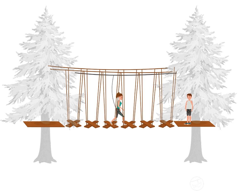 安装在两根钢丝绳上。钢丝绳之间的距离为60厘米。弹弓长200厘米。 由樟子松木制成。
