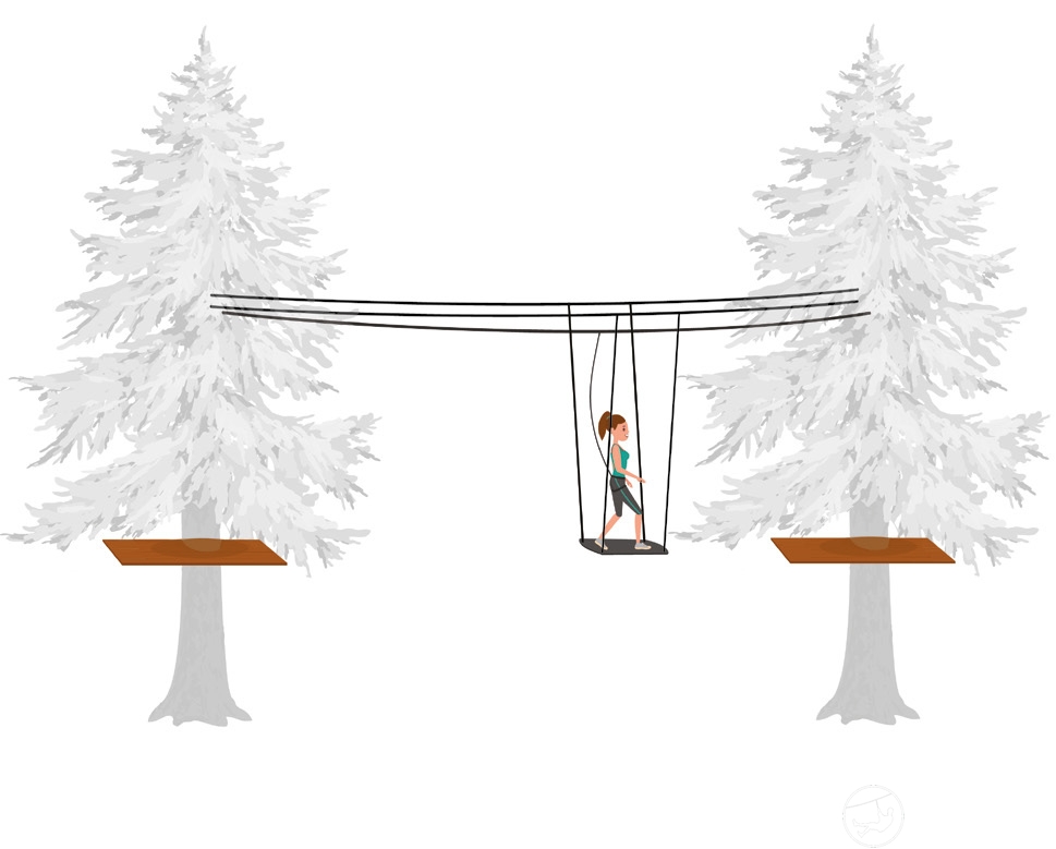 安装在两根钢丝绳上。钢丝绳之间的距离为60厘米。