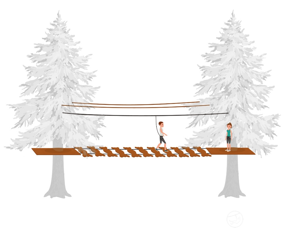 安装在两根钢丝绳上。孔之间的距离为50厘米。
