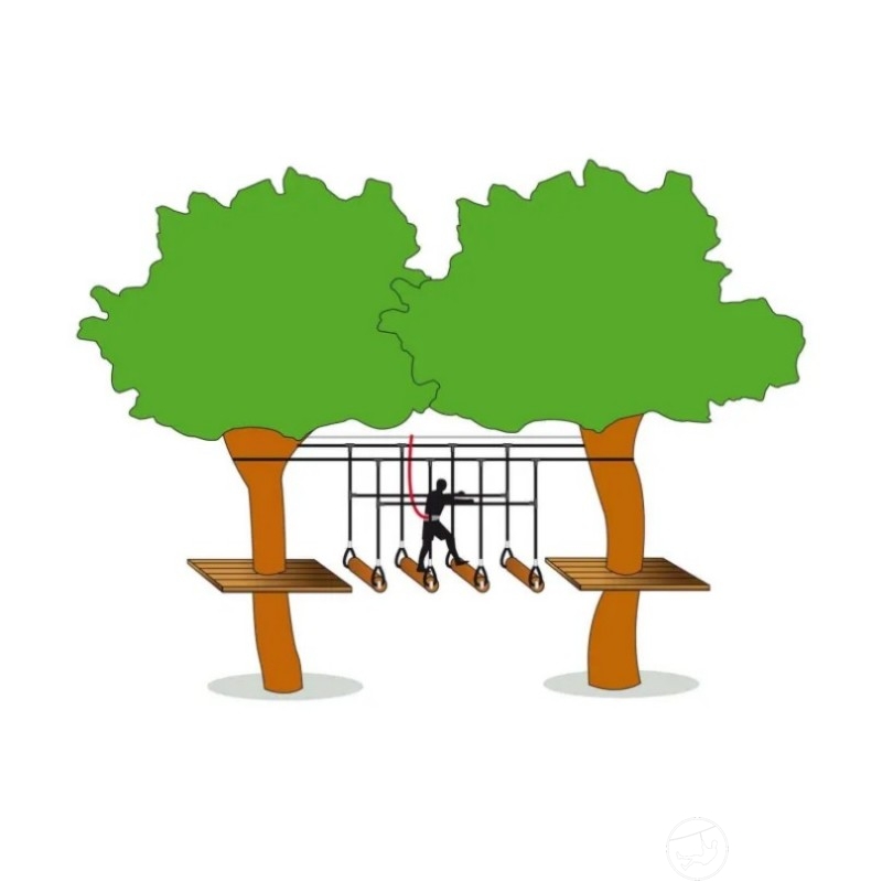 该模块中部高度配有扶手。旋转原木采用4级高压灭菌木制成,每根间距为50厘米。