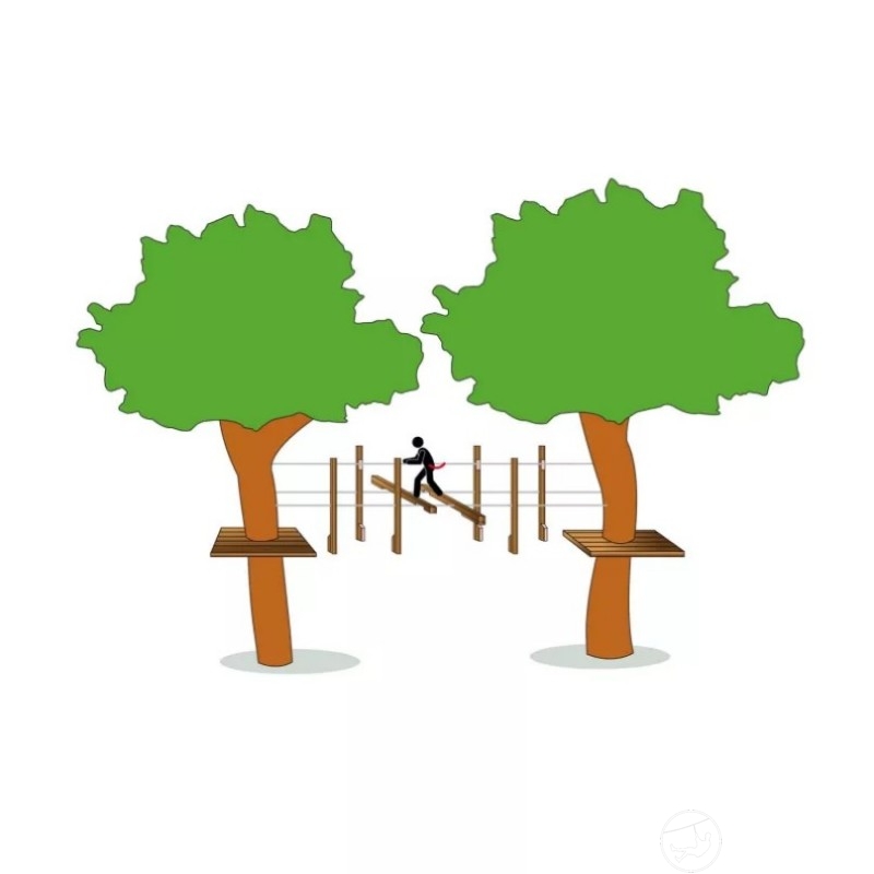 由90 x 90毫米方木椽子制成,采用4级高压釜,安装于两根钢索之间。每把锤子都配有配重,尺寸为1.80米。固定游戏模块需要用钢缆夹。