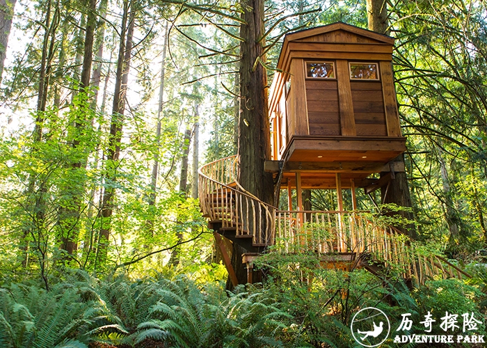 树屋 tree house 是采用环保可持续的材料在树上悬空建造的房屋,符合当下人们追求回归自然的本...