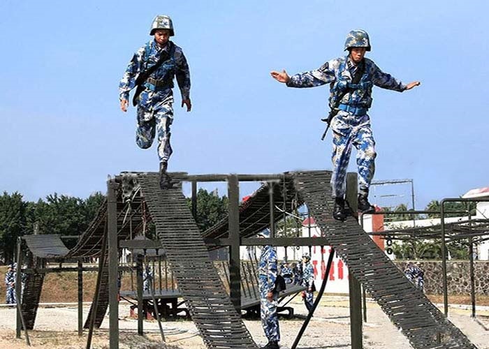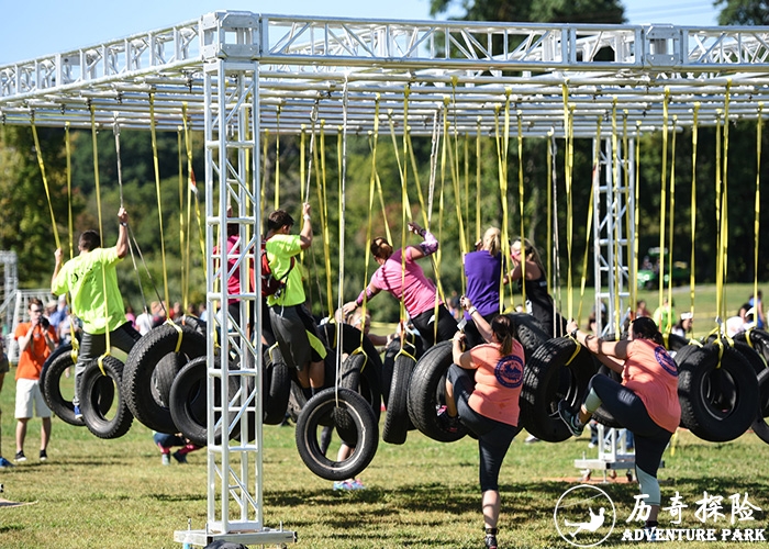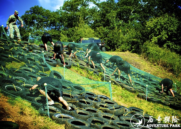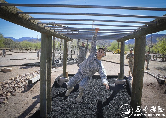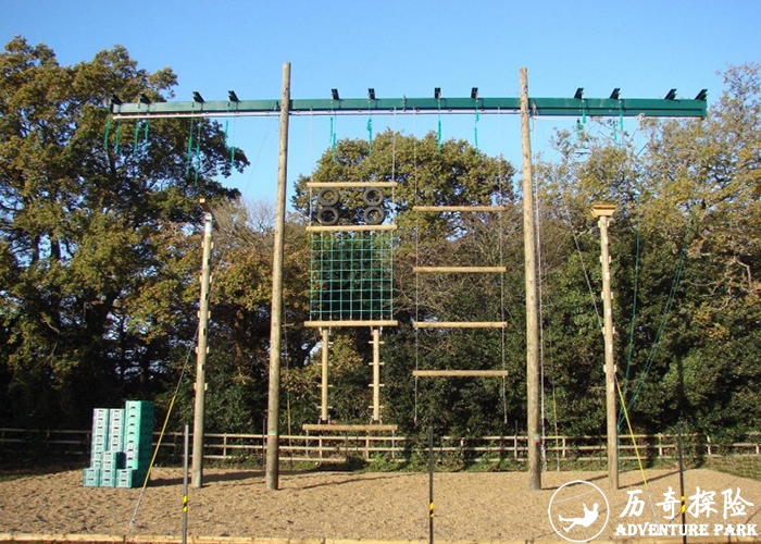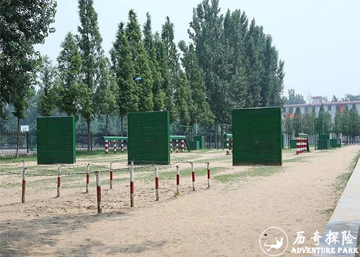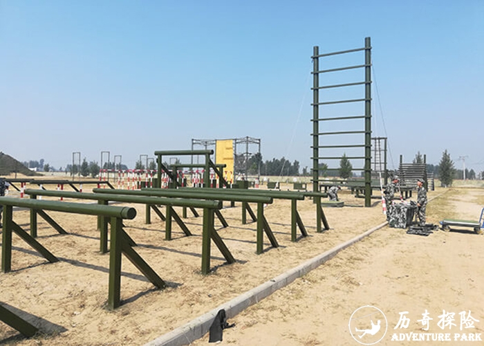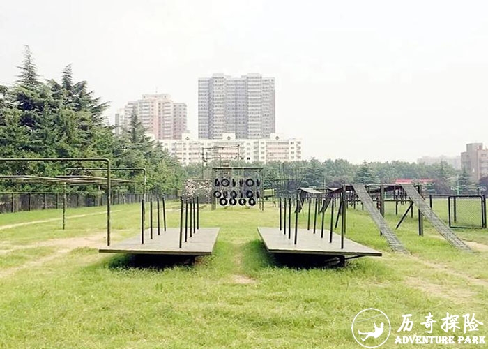 400米渡海登岛包含软梯、螺旋梯、高低横木、绳网、轮胎攀台、摇摆平台、晃动横梯、跨网、阻绝墙、模拟沙...
