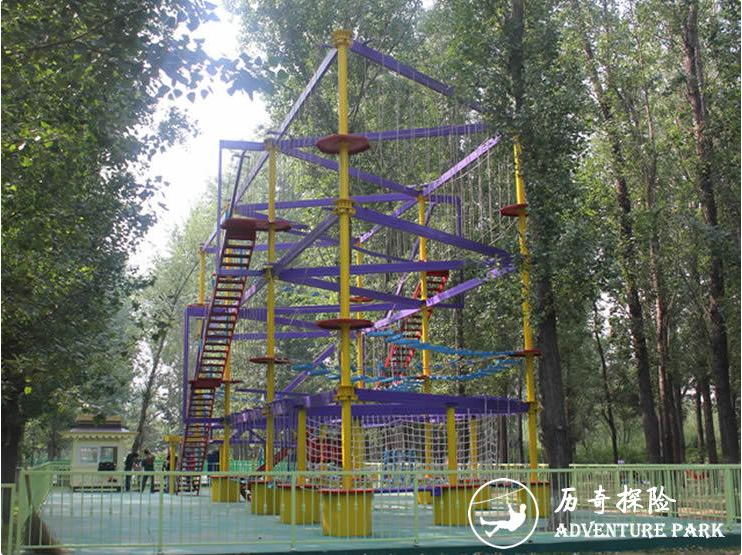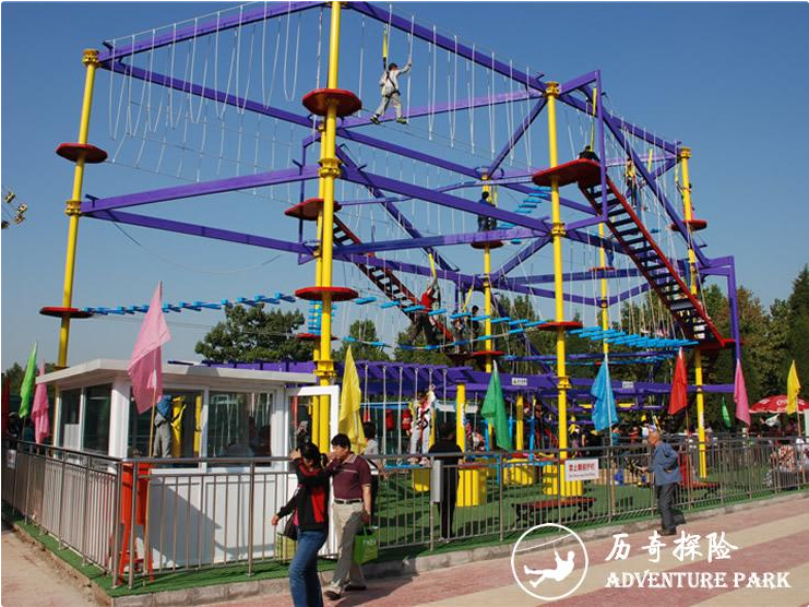 历奇天空步道探险乐园是以户外拓展训练器材为主要元素,以拓展训练项目为基础开发的适用于景区游乐活动的探险游乐设备。绳网探险乐园设备经严密科学设计进行装配,由多个直线结构金属平台组合而成,每个平台之间由各种金属支撑杆或者绳索连接,平台之间不同步道的组合相互搭配,使得攀爬、跨越及空中行走更加多样化,充满了趣味性和娱乐性。绳网探险乐园可靠的安全设计,使参与其中的游客无后顾之忧,可以安心大胆的投入其中。 天...