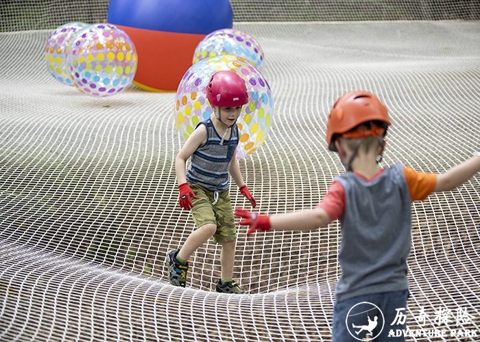 森林魔网是借助树干搭建在树林中的一项无动力游乐设施,利用户外使用的无结绳网,在森林的半空中打造一个空中的弹跳游乐项目,目前森林魔网属于无动力游乐设施产品的一个新起之秀,各景区,营地等旅游目的地对于新奇的项目更是供不应求,魔网可以是纯色系的,也可以是彩色系的,根据场地森林中可用的树干来定制绳网的造型和颜色,也可以配合丛林探险,丛林树屋等不同的体验项目,打造一个综合型的空中冒险乐园,魔网可针对全年龄段的人群开发,无论是散客还是团队,都可以在上面找到适合自己的体验方式,不用穿戴安全装备,更加保障了项目的接待量不因装备数量而受到限制。有人贴切的形容,这是森林里的空中蹦床。