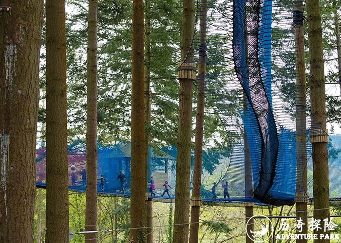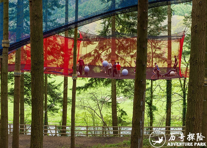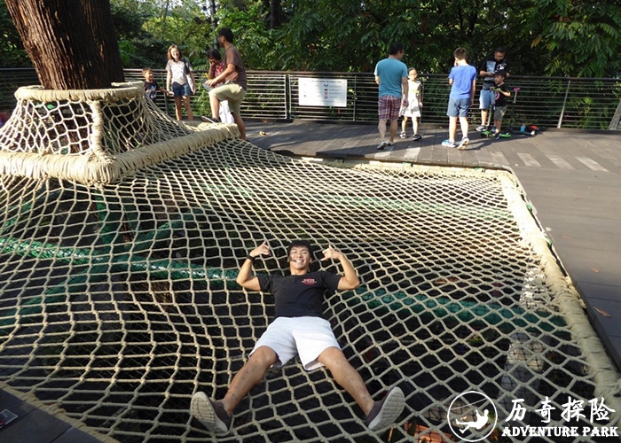 森林魔网是借助树干搭建在树林中的一项无动力游乐设施,利用户外使用的无结绳网,在森林的半空中打造一个空中的弹跳游乐项目,目前森林魔网属于无动力游乐设施产品的一个新起之秀,各景区,营地等旅游目的地对于新奇的项目更是供不应求,魔网可以是纯色系的,也可以是彩色系的,根据场地森林中可用的树干来定制绳网的造型和颜色,也可以配合丛林探险,丛林树屋等不同的体验项目,打造一个综合型的空中冒险乐园,魔网可针对全年龄段的人群开发,无论是散客还是团队,都可以在上面找到适合自己的体验方式,不用穿戴安全装备,更加保障了项目的接待量不因装备数量而受到限制。有人贴切的形容,这是森林里的空中蹦床。