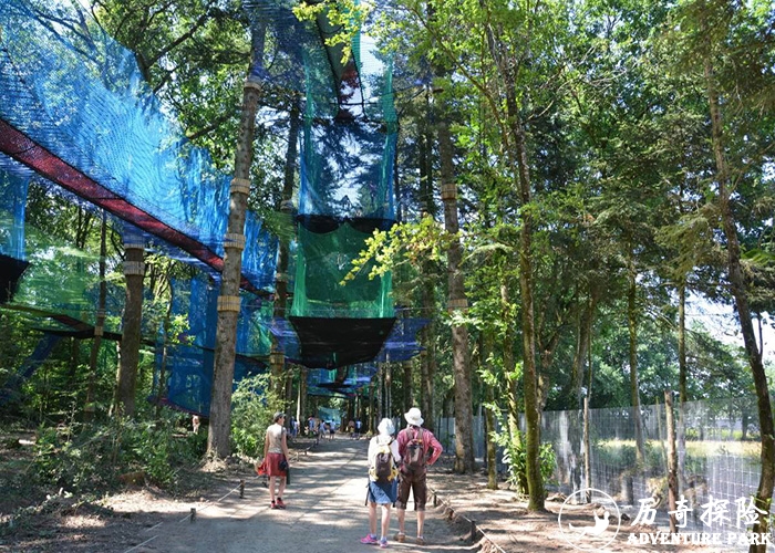 森林魔网是借助树干搭建在树林中的一项无动力游乐设施,利用户外使用的无结绳网,在森林的半空中打造一个空中的弹跳游乐项目,目前森林魔网属于无动力游乐设施产品的一个新起之秀,各景区,营地等旅游目的地对于新奇的项目更是供不应求,魔网可以是纯色系的,也可以是彩色系的,根据场地森林中可用的树干来定制绳网的造型和颜色,也可以配合丛林探险,丛林树屋等不同的体验项目,打造一个综合型的空中冒险乐园,魔网可针对全年龄段的人群开发,无论是散客还是团队,都可以在上面找到适合自己的体验方式,不用穿戴安全装备,更加保障了项目的接待量不因装备数量而受到限制。有人贴切的形容,这是森林里的空中蹦床。