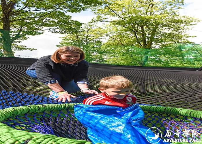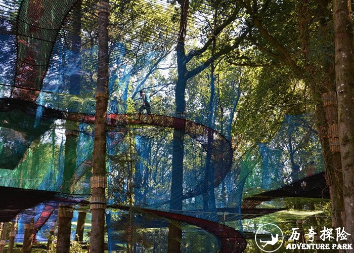 森林魔网是借助树干搭建在树林中的一项无动力游乐设施,利用户外使用的无结绳网,在森林的半空中打造一个空中的弹跳游乐项目,目前森林魔网属于无动力游乐设施产品的一个新起之秀,各景区,营地等旅游目的地对于新奇的项目更是供不应求,魔网可以是纯色系的,也可以是彩色系的,根据场地森林中可用的树干来定制绳网的造型和颜色,也可以配合丛林探险,丛林树屋等不同的体验项目,打造一个综合型的空中冒险乐园,魔网可针对全年龄段的人群开发,无论是散客还是团队,都可以在上面找到适合自己的体验方式,不用穿戴安全装备,更加保障了项目的接待量不因装备数量而受到限制。有人贴切的形容,这是森林里的空中蹦床。