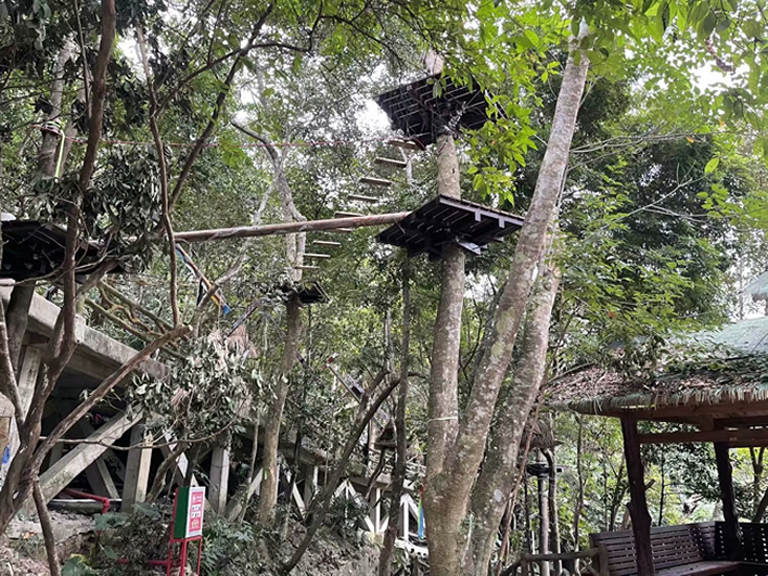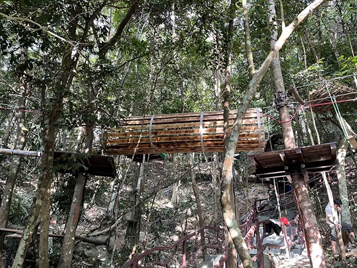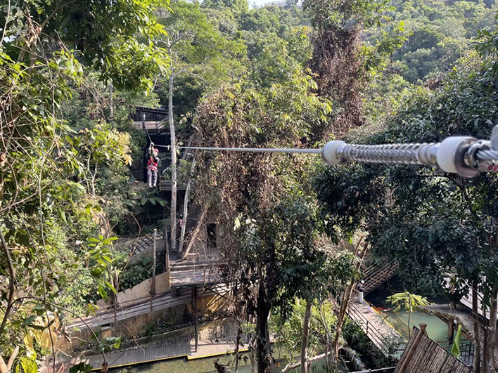 由历奇探险承建的海南槟榔谷黎苗文化旅游区飞越丛林项目建成对外开放,欢迎前来体验!项目位于古木参天、藤蔓交织的槟榔谷景区后山热带雨林,结合现场地形设计,从景区金门苗族文化体验区域开始到银谷飞越金鱼池对岸为终点,同时加入黎族、苗族特有的文化及树屋进行线路游戏关卡的创新设计,让人们体验飞越热带雨林的刺激之感,俯瞰雨林美景,在天然氧吧的滋润中经历一场别样的冒险之旅,体验人猿泰山生活,感受户外探险的无限乐趣!