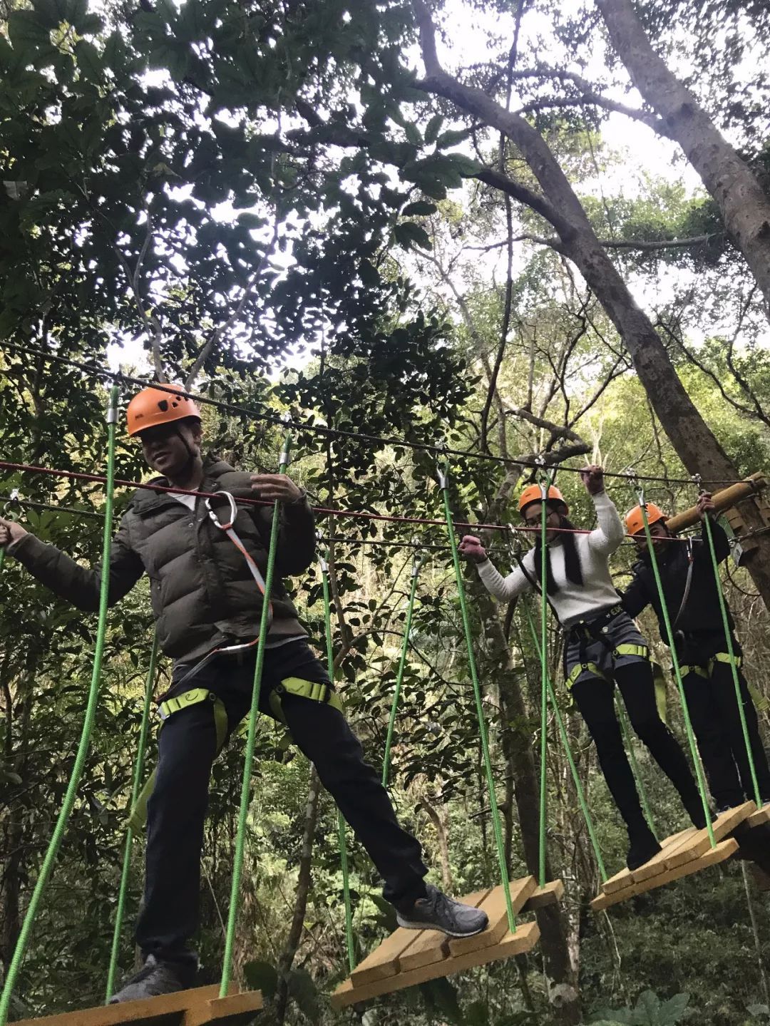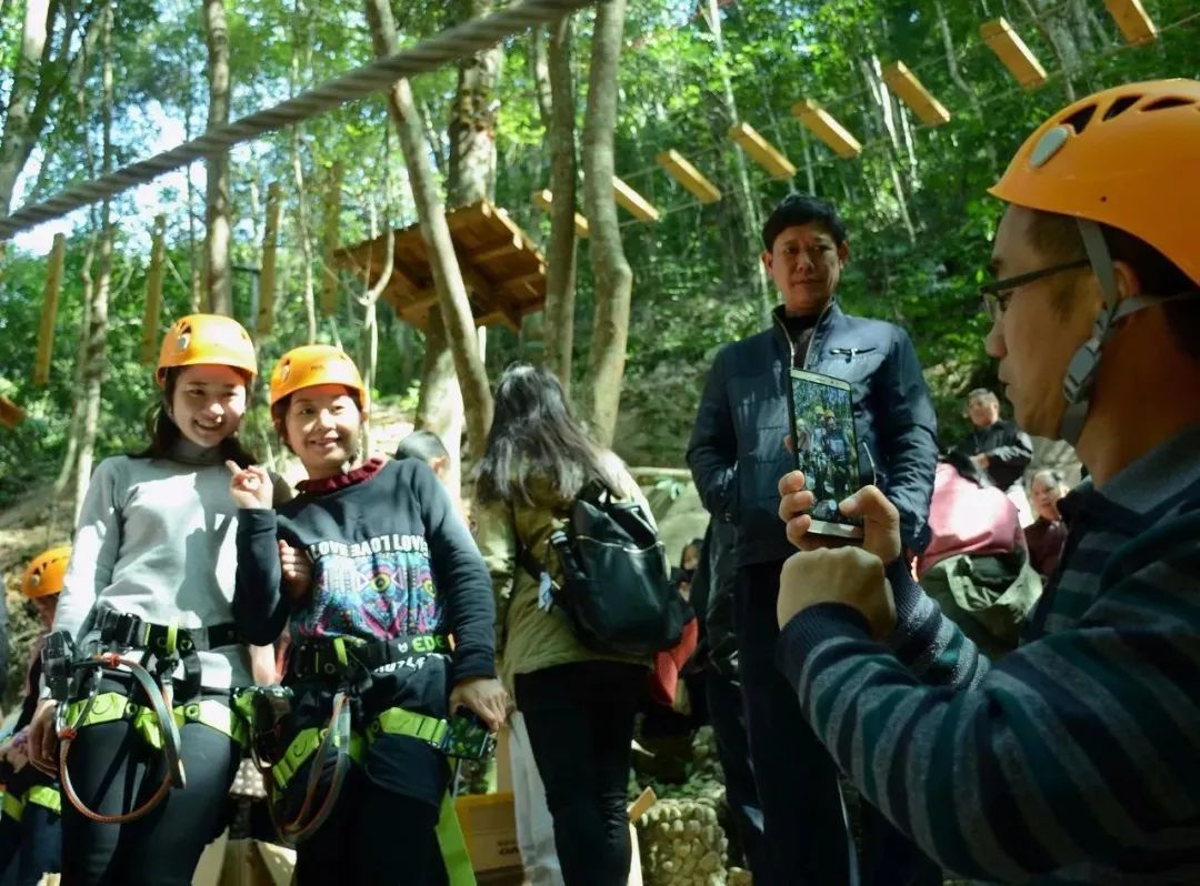 桂山丛林飞越建设在大桂山原始森林深处,由专业的团队按照欧洲EN 15567-1运动与娱乐设施绳索课程标准规范要求设计施工,采用无障碍连续保护系统,游客配备的个人防护装备均由欧洲进口,符合欧盟标准。通过对游客进行培训示范,加上专业工作人员的全程陪同,严格的操作规范,给予了所有参与者有力的安全保障。