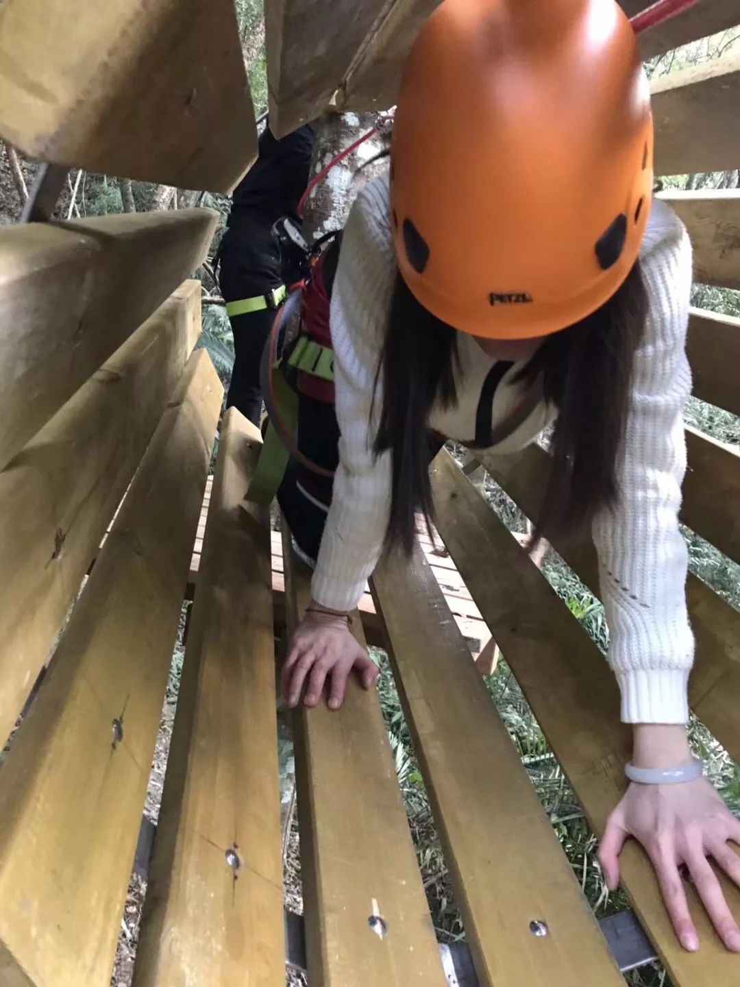 “我不敢啊!只能硬着头皮往上爬,明显感觉到胳膊在抖啊…一边害怕一边觉得很想刺激啊~真是活到现在才知道自己胆子原来不是很大。”
