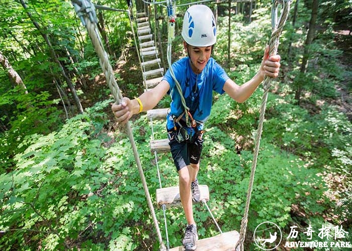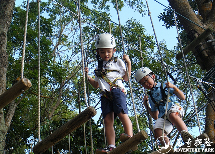 历奇探险提供评估,研究,线路安装设计,线路安装建造等。包括在自然树木之间和水泥建筑之间以及室内和户外沿着设有安全吊挂装置的线路至各个平台,当中根据地形还建有巨大牢固的安全网保护,因此不需多余的人为安全跟踪。