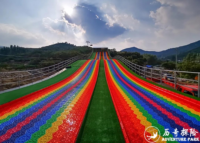 七彩滑道(俗称彩虹滑道、滑旱雪、滑草), 它起源于欧洲,是运动员及滑雪爱好者在耐候性较好的改性塑料制...