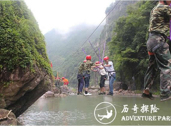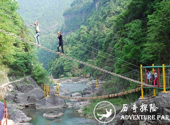 水上峡谷穿越拓展是以户外(拓展)体验为主的户外运动乐园,借助旅游景区现有的水道、峡谷地势设计缅甸桥、飞檐走壁、抽板过河、飞夺泸定桥、滑索过涧、水上飞、携手并进、高空溜索、浮桩桥、天梯、荡绳过河、凌空漫步等各种不同体验活动的情境设计和寓乐于游的参与模式,把游览峡谷山光水色和体验户外运动完美融合,集体育,娱乐,休闲,体验、趣味、旅游为一身的峡谷穿越游玩项目。让游客进行闯关挑战。该项目既能在“智”、“勇”方面得到挑战和考验。又能在团队的配合中得到提升,将自身的潜能进行无限挖掘,从而让参与者充分体验挑战的兴奋与激情,让您在享受快乐的同时增加了平衡、跨越、挑战、胆量等能力的锻炼。