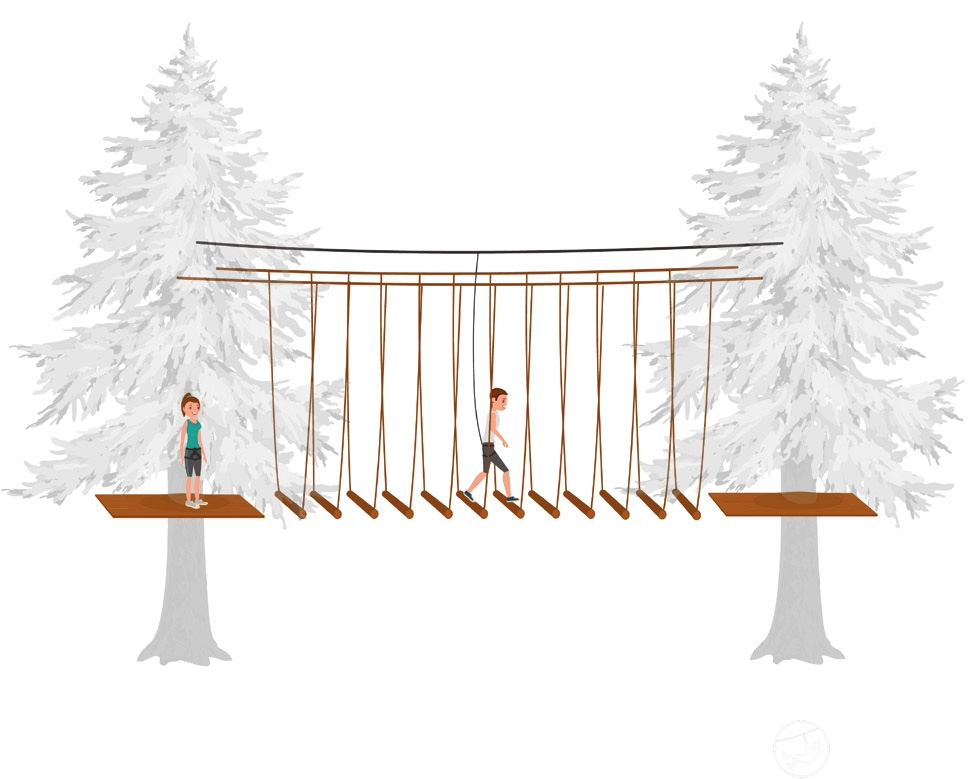 安装在两根钢丝绳上。钢丝绳之间的距离为60厘米。弹弓长200厘米。