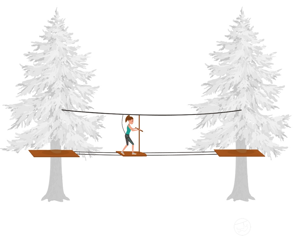 安装在两根钢丝绳上。钢丝绳之间的距离为60厘米。由樟子松木制成。