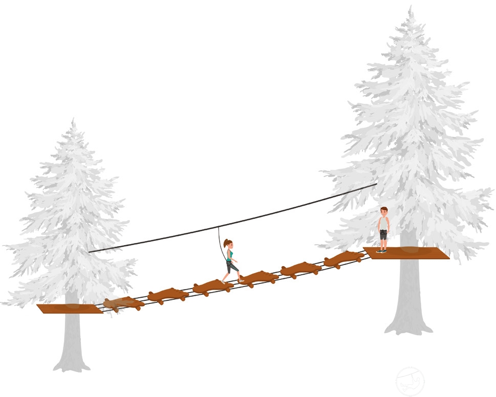 安装在两根钢丝绳上。孔之间的距离为60厘米。