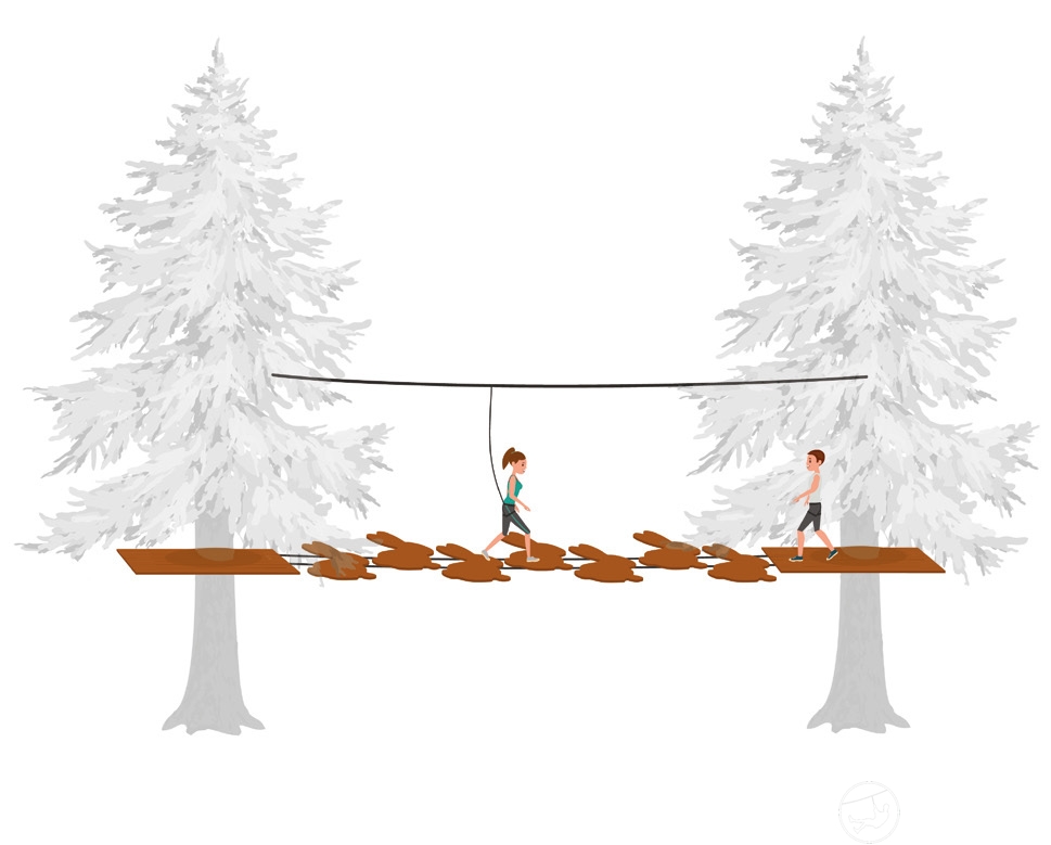 安装在两根钢丝绳上。孔之间的距离为50厘米。