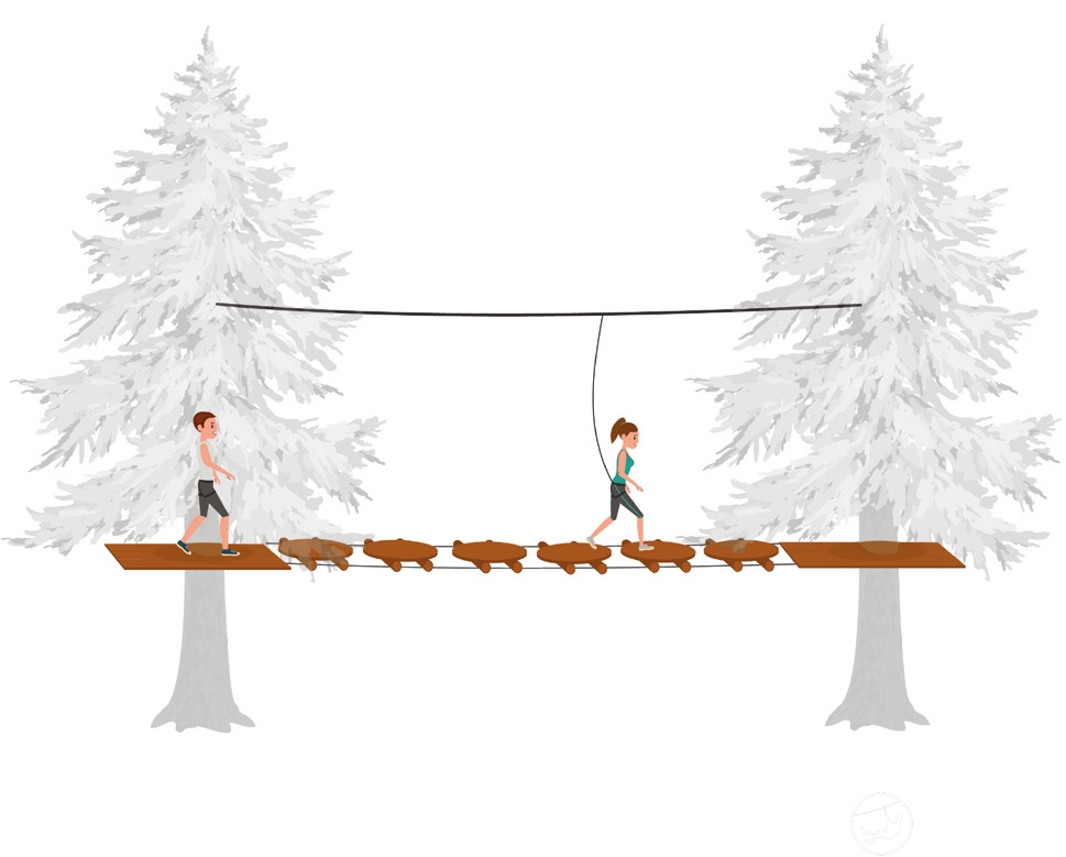 安装在两根钢丝绳上。钢丝绳之间的距离为50厘米。