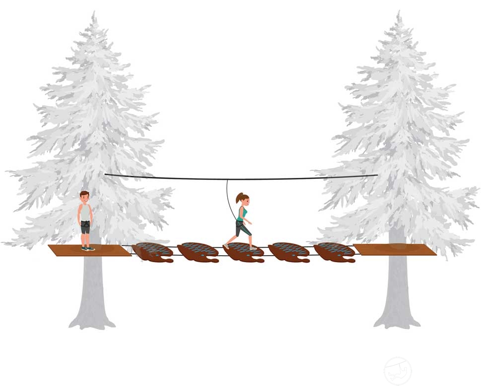 安装在两根钢丝绳上。孔之间的距离为50厘米。